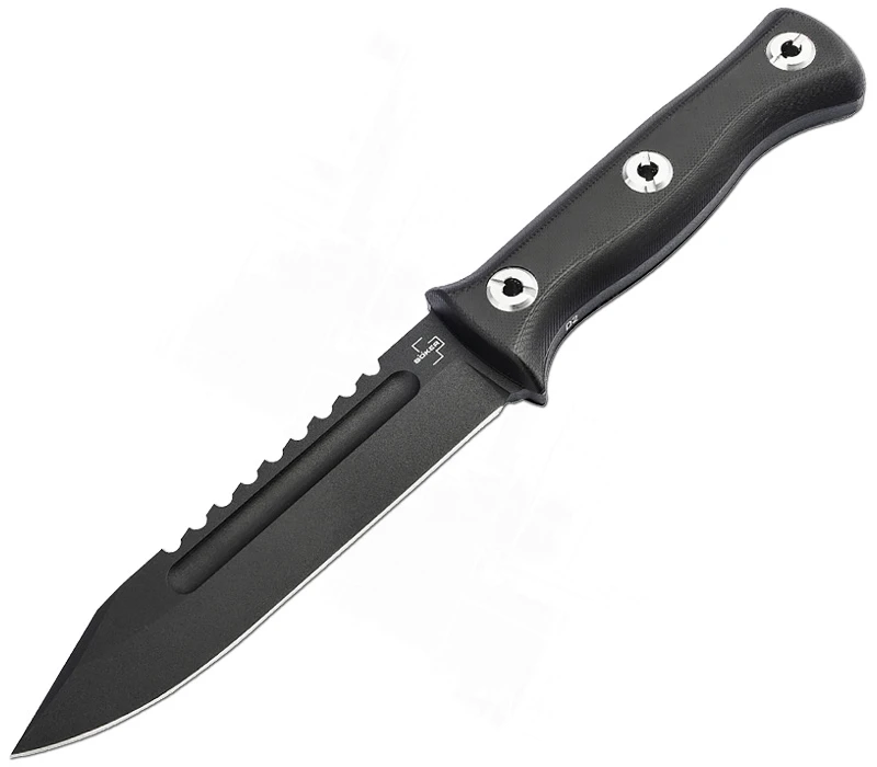 Eine beidseitige Hohlkehle verleiht der Klinge nicht nur ein markantes Aussehen, sondern sorgt auch für eine ausgezeichnete Schneidleistung und Gewichtsreduktion. Die Vollerl Bauweise und die verschraubten Hohlnieten gewährleisten wie schon erwähnt maximale Stabilität und Langlebigkeit – du kannst dich also darauf verlassen, dass dieses Messer auch den härtesten Bedingungen trotzt.