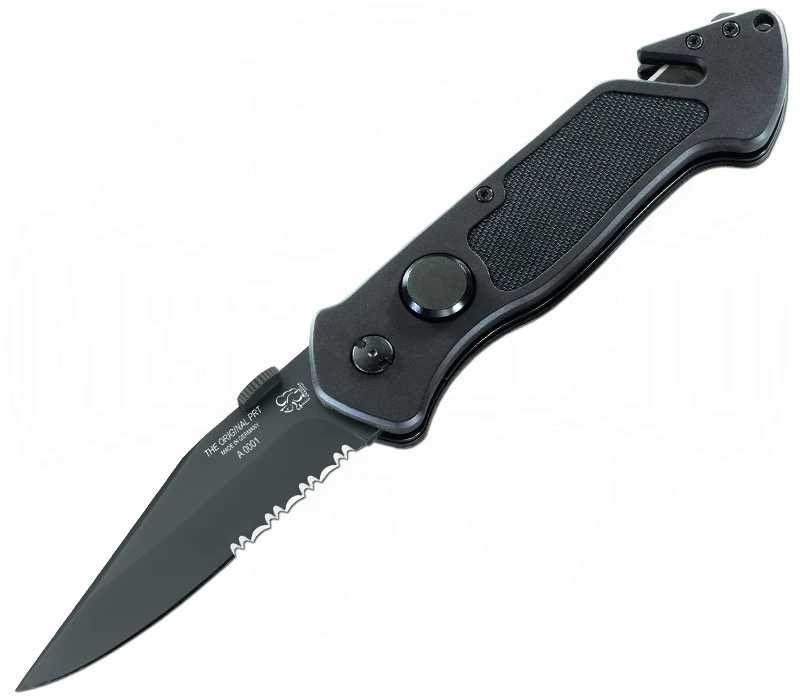 Der Griff aus schwarz eloxiertem Aluminium mit rutschfester Gummieinlage bietet eine angenehme Handlage und sorgt für eine sichere Bedienung auch in anspruchsvollen Situationen. Ein stabiler Gürtelclip ermöglicht eine sichere Befestigung am Gürtel, während die Liner Lock-Verriegelung mit Sicherheitsstopp und Entriegelung über einen Druckknopf auf der Griffschale eine einfache Handhabung gewährleistet – auch mit Handschuhen. Das durchdachte Rettungsmesser verfügt über einen integrierten Gurtschneider, einen Glasbrecher sowie eine großzügige Lanyardöse, die es ermöglicht ein individuelles Lanyard oder eine Fangriemenschnur zu befestigen. Mit einer Gesamtlänge von 20,5 cm und einer Klingenlänge von 8,4 cm bietet das Messer eine ausgewogene Mischung aus Größe und Kompaktheit, die eine angenehme Handhabung gewährleistet. Die Klingenstärke von 2,5 mm sorgt für eine sehr gute Robustheit bei gleichzeitig hervorragenden Schneideigenschaften. Hergestellt aus Böhler N695 Stahl, einem modernen Stahl mit herausragenden Eigenschaften, bietet die Klinge des PRT-VI eine außergewöhnliche Schnitthaltigkeit und Langlebigkeit. Mit einem Gewicht von nur 120 g trägt das praktische Einsatzmesser auch in der Hosentasche nicht unangenehm auf und ist somit immer griffbereit, wenn es darauf ankommt.