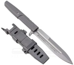 Das Requiem von Extrema Ratio ist als taktisches Mehrzweckmesser konzipiert. Es besitzt eine stabile, 118 mm lange, einseitig geschliffene Stiletto-Klinge aus Böhler N690 Stahl. Der graue Griff besteht aus widerstandsfÀhigem Forprene. Durch die Daumenauflage und die funktionelle Griffgestaltung bietet das Messer ein gutes Handling und kann auch mit Handschuhen verwendet werden. Zum Griffende sitzt ein kleiner Knauf. Dank des ausgefeilten Designs wiegt das Messer gerade einmal 86 g.
