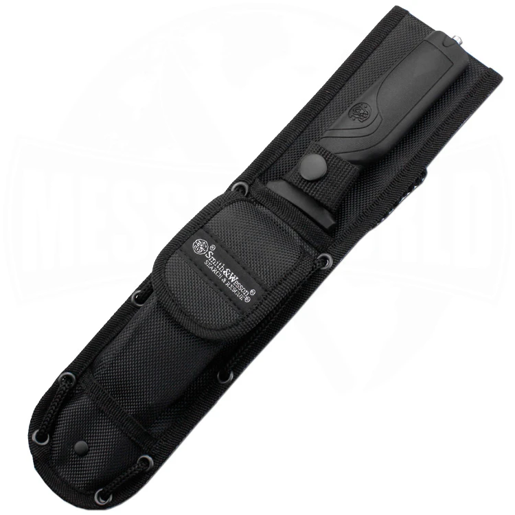 Sie suchen ein perfektes, aber nicht zu teures Survival- oder Einsatzmesser? Dann schauen Sie sich doch mal das Search & Rescue Tanto Fixed Blade an. Dieses Messer bietet so einiges an Möglichkeiten bei einem phĂ€nomenalen Preis-/LeistungsverhĂ€ltnis. Ob Sie damit schneiden, hacken, Glasscheiben in Notsituationen einschlagen, Kleidung auftrennen oder einfach nur Holz fĂŒr das Lagerfeuer spalten mĂŒssen – das Search & Rescue ist fĂŒr alle anfallenden Aufgaben bereit. Der Griff, bestehend aus Gummi und Aluminium, bietet eine gute Handlage beim Arbeiten, und wenn Sie fertig sind und das Messer an SchĂ€rfe verloren haben sollte, einfach mit dem MesserschĂ€rfer, welcher in der mitgelieferten Nylonscheide steckt, nachschĂ€rfen. Die Klinge aus 8Cr13MoV wurde mit einer schwarzen Oxid-Beschichtung versehen, um Reflexionen zu minimieren. Zum Griff hin finden Sie eine TeilsĂ€gezahnung. Das Messer lĂ€sst sich mit der GĂŒrtelschlaufe leicht am GĂŒrtel anbringen.