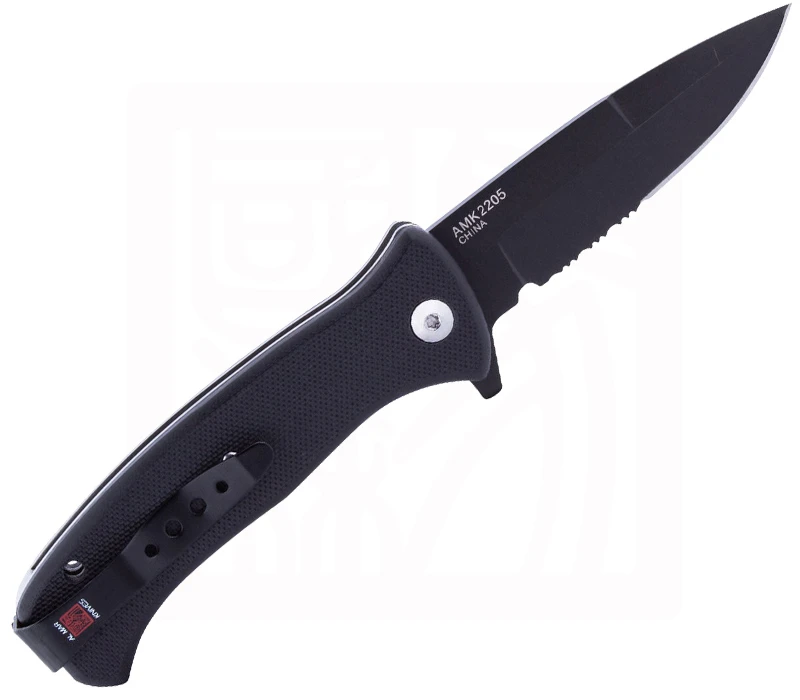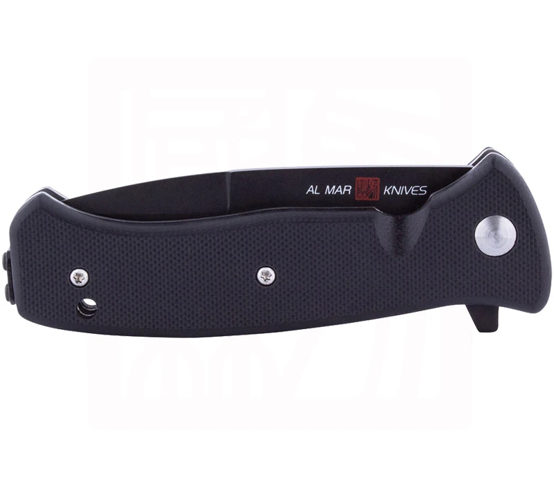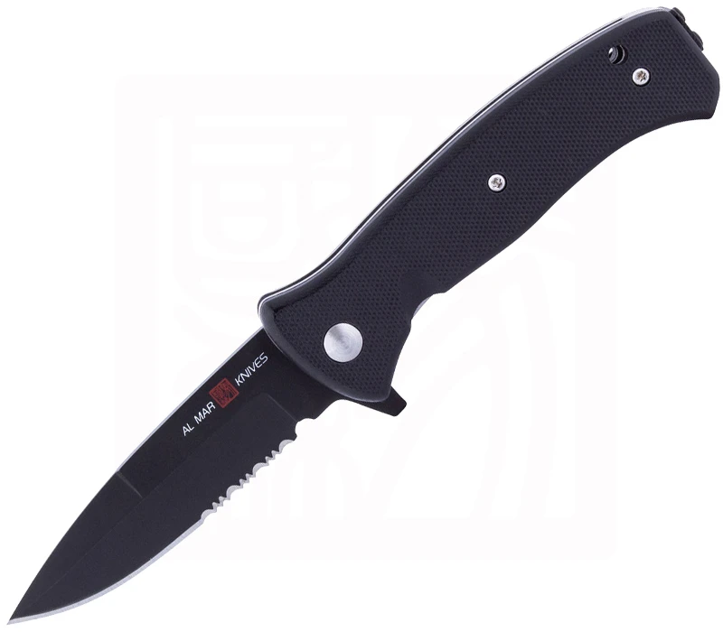 Das AL MAR 2205 Mini S.E.R.E. ist ein perfekter taktischer Folder. Ausgestattet mit einer schwarz pulverbeschichteten Klinge mit Teilwellenschliff aus widerstandsfĂ€higem D2 Werkzeugstahl erledigt er auch anspruchsvolle Schneidaufgaben. Mit dem Liner-Lock wird die Klinge sicher arretiert. FĂŒr einen sicheren Halt sorgen auch die robusten Grffschalen aus G10, und mit dem umsetzbaren Deep Carry Clip lĂ€sst es sich an der Kleidung oder AusrĂŒstung befestigen. Der Flipper ermöglicht durch die FederunterstĂŒtzung ein sauberes und schnelles Ăffnen der 7,6 cm langen Klinge.