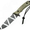 Das Short Tanto 1254 ist wie der Name vermuten lässt, die kürzere Variante des Tanto USMC Messers von Ka-Bar aus den USA. So kommt das beliebte Einsatzmesser in einem neuen und handlicheren Style, welches nicht zuletzt auch für den Einsatz im Outdoorbereich geeignet ist. Die 13,3 cm lange Klinge spart an Gewicht ordentlich ein und lässt sich angenehm führen. Gefertigt wird diese aus 1095-Cro-Van-Stahl, welcher mit einer schwarzen Beschichtung überzogen ist. Im üblichen Ring-Stil ist auch der Kraton-G Griff angeordnet, der das Holz durch einen noch handlicheren Stoff ersetzt hat. Als Allzweckmesser, welches vom Amerikaner gerne Utility Knife genannt wird, weist das Ka-Bar eine scharfe Klinge auf, die aufgrund des Materials auch leicht nachgeschärft werden kann. Während der Arbeit mit der 4,2 mm starken Tanto-Klinge sind deine Finger durch den Handschutz gesichert. Verstaut wird das Kampfmesser in einer ebenfalls schwarzen, Lederscheide mit Druckknopf-Sicherung.