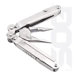 PowerLock – der Name steht fĂŒr ein vielseitiges und robustes, klappbares Werkzeug. Das Multitool mit der Modell-Nr. S62 von SOG besitzt eine spezielle ZangendruckverstĂ€rkung. Die patentierte Compound Leverage Technology arbeitet mit mehreren Drehpunkten und verdoppelt damit den Zangendruck dieses genialen Tools. Der schmale Zangenkopf kann auch in einer beengten Arbeitssituation eingesetzt werden. Das 252 g schwere Tool bietet 18 verschiedene, funktionelle Werkzeuge, die in geöffnetem Zustand arretiert werden, unter anderem auch den V-Cutter, mit dem man Gurte durchtrennen kann sowie eine Wellenschliffklinge, Feile, Dosenöffner, Flaschenöffner, Bithalter, Stechahle und mehr. Ăffnet man das Tool, so ist erst einmal die Zange in Bereitschaft. Die Werkzeuge befinden sich im Griff, der aus rostfreien Edelstahl besteht. Alle Werkzeuge sind leicht zugĂ€nglich und werden in geschlossenem Zustand durch eine Abdeckung geschĂŒtzt.Â