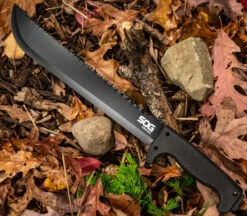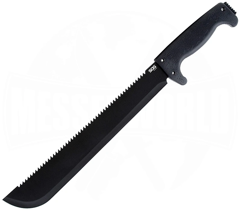 Die SogFari Machete hat eine Klingenlänge von 33 cm. Auf dem Klingenrücken findet sich eine Säge mit tief einschneidenden Zähnen. Der Griff der Machete besteht aus Kraton, und am verlängerten Ende des Griffes findet sich ein Stachelerl zun Stoßen und Schaben. Geliefert wird die Machete mit einer Nylonscheide.