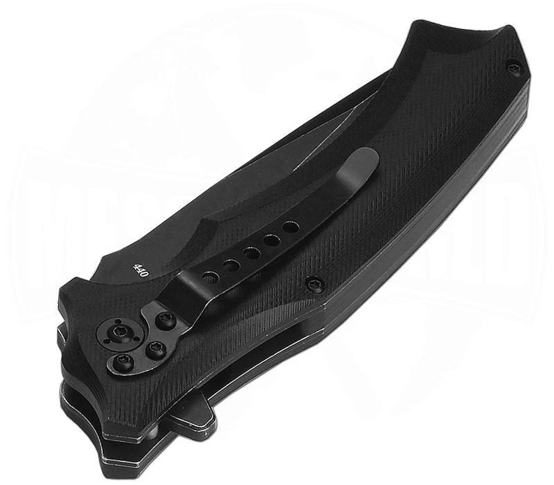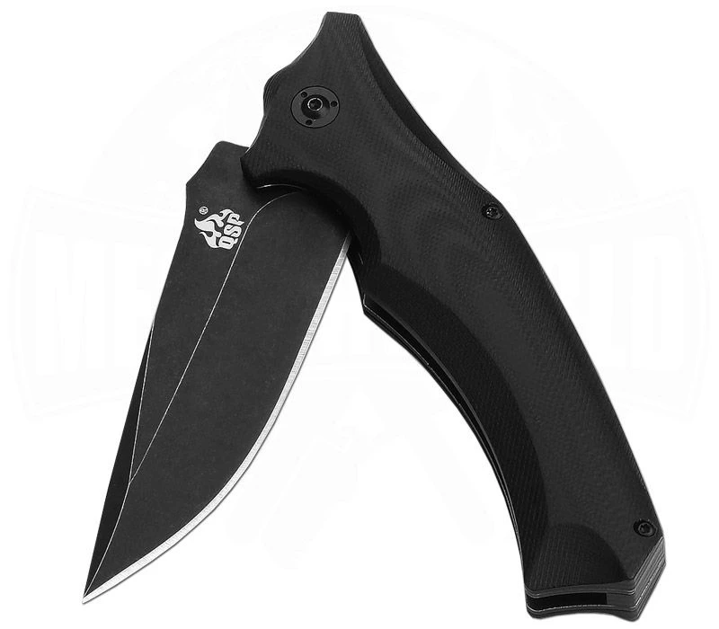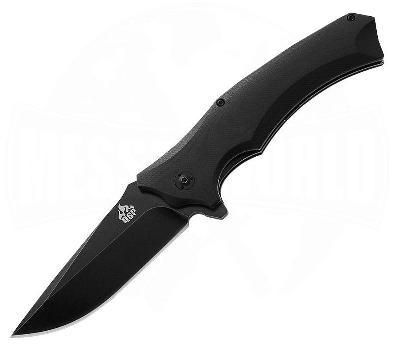 Das Sthenia von QSP kommt in einer außergewöhnlichen Griffform und einer coolen All-Black Optik. Die 8,9 cm lange Klinge aus 440C Stahl öffnet blitzschnell über den Flipper und arretiert augenblicklich über den Liner-Lock. Das Griffstück besteht aus G10 und liegt dank der Texturierung hervorragend in der Hand. Passend zum ungewöhnlichen Design ziert sich der Pocket-Clip um die Klingenachsschraube herum. Zum Schutz vor Korrosion und weiteren äußeren Einflüssen ist die Klinge mit einer schwarzen Beschichtung versehen.