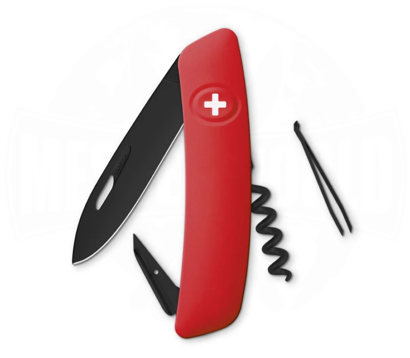 Das SWIZA Taschenmesser Modell D01 Allblack Red hüllt das klassische Schweizer Taschenmesser in ein schwarz-rotes Gewand. Es verfügt über 6 Funktionen und liegt mit seiner gebogenen Form und der angenehm weichen und besonders robusten Anti-Rutsch-Oberfläche optimal in der Hand. Das meisterhaft durchdachte Design macht die Werkzeuge direkt zugänglich. Werkzeuge und Klinge sind mit durchgehenden Ausstanzungen versehen, somit lassen sie sich besonders einfach von Rechts- und Linkshändern öffnen. Das SWIZA Taschenmesser verfügt über eine Sicherheitsblockierung der Klinge. Die Klingenblockierung, die sich durch ein einfaches Drücken des SWIZA Kreuzes lösen lässt, fügt sich hervorragend in den Messergriff ein.