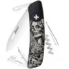 Das Moonwalk Allblack von Swiza ist ein modernes und ansprechendes Taschenmesser, welches zudem noch mit ein paar nützlichen Werkzeugen ausgerüstet ist. Die schwarze Softtouch-Griffschale zeigt den Aufdruck eines Astronauten auf dem Mond, der die unendliche Freiheit des Weltalls genießt. Die 7,5 cm lange und komplett schwarze Klinge des Schweizer Messers ist, genau wie die Werkzeuge, aus rostfreiem 440er Edelstahl gefertigt und mit einer PVD.Beschichtung überzogen. Wie üblich kann die Arrtierung durch Druck auf das in der Griffschale implementierte Kreuz gelöst werden. Das revolutionäre 360° Design liegt ergonomisch in der Hand, und die für Links- und Rechtshänder ausgelegten Einkerbungen zeigen, wie durchdacht die Messer von Swiza sind. Durch die Gesamtlänge von 9,5 cm passt das D01 Moonwalk Allblack so gut wie in jede Hosentasche und ist nicht nur was für Sammler und Raumfahrt-Fans. Dieses Messer kann gerne an den Kindheitstraum erinnern, mal ins All zu fliegen.