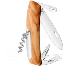 Das Swiza Wood Olive kann sich echt sehen lassen. Es zeigt das moderne Schweizer Taschenmesser in einem ganz neuen Licht. Die Griffbeschalung ist einzigartig, denn jedes Messer besitzt durch den natĂŒrlichen Werkstoff seine eigene Maserung. Ausgestattet mit 11 Funktionen bietet das Modell D03 Wood Olive viele nĂŒtzliche, hochwertige Werkzeuge, die man tĂ€glich im Einsatz haben kann. Funktion und Haptik wurden exzellent umgesetzt, so sind Werkzeuge mit einer durchgehenden Ausstanzung versehen, damit sie leicht und bequem, auch fĂŒr Rechts- und LinkshĂ€nder, zu bedienen sind. Die Ergometrie der Griffe unterstĂŒtzt die Handlage als auch die Bedienung. SelbstverstĂ€ndlich ist bei allen Swiza-Taschenmessern die Sicherheitsblockierung der 7,5 cm langen Klinge, die per Druck auf das Kreuz entriegelt wird. Das bietet Sicherheit beim Arbeiten mit diesem modernen Schweizer Messer.