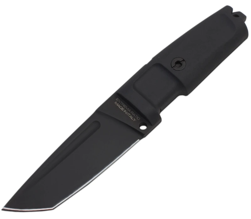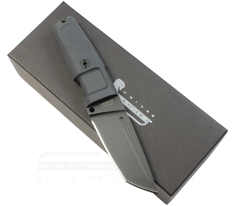 Das T4000 C ist ein handliches und kompaktes Gürtelmesser für diejenigen, die japanische Klingenformen lieben, aber nicht auf die taktische Gebrauchsfähigkeit verzichten wollen. Die schwarze, MIL-C-13924 beschichtete und 10,4 cm lange Tanto-Klinge wird aus dem stabilen N690 Böhlerstahl hergestellt, der eine Rockwellhärte von 58 HRC aufweist. Der Griff aus Forprene liegt satt in der Hand. Am Griffende kann problemlos eine Fangschnur angebracht werden.