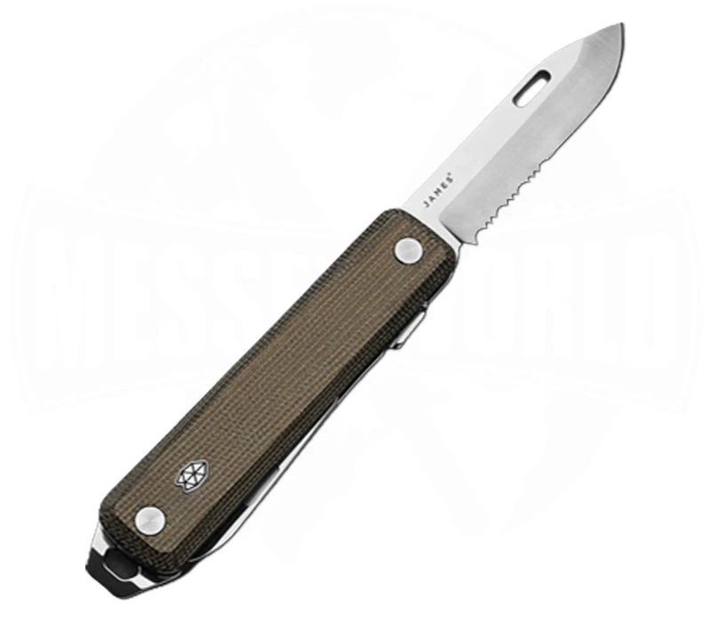 Schauen wir uns dieses schicke Slipjoint Messer mal etwas genauer an. Ausgestattet mit einer 6,6 cm langen Drop Point Klinge mit Teilwellenschliff, einer Schere und einem Schlitzschraubendreher bewĂ€ltigst du mit diesem Messer so einige Aufgaben im Alltag. Der Griff ist aus OD Green Micarta, ĂŒbrigens eine sehr beliebte Farbe in der Messerwelt, und bietet eine robuste und sehr gute Handlage. Ach, jetzt hĂ€tte ich doch fast vergessen, die Pry Bar zu erwĂ€hnen, ja genau die ist auch noch dabei. Und wenn Ihr euch fragt, wie man es transportiert, dann bieten wir euch einen Deep Carry Drahtclip an, der so diskret ist, das selbst Sherlock Holmes Schwierigkeiten hĂ€tte, ihn zu entdecken.