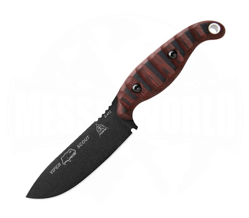 Lass dich nicht von der schönen Optik des Viper Scout tĂ€uschen. Es ist in der Wildnis geboren und aufgewachsen. Die 3 mm starke Klinge besteht aus 1095-Stahl und bietet eine hohe StabilitĂ€t. Der Griff aus G10 ist mit dem bekannten Rocky Mountain Tread-Design verschönert. ZusĂ€tzlich liegt er mit seiner ergonomischen Form bequem in der Hand. Zum Schutz von Ă€uĂeren Einwirkungen kommt das Messer mit einer passenden Lederscheide. Sie liegt nah am Körper, hĂ€lt das Messer sicher und lĂ€sst es dich schnell ziehen. Das Viper Scout besitzt eine groĂe Fangriemenöse, an der du dein individuelles Lanyard anbringen kannst.