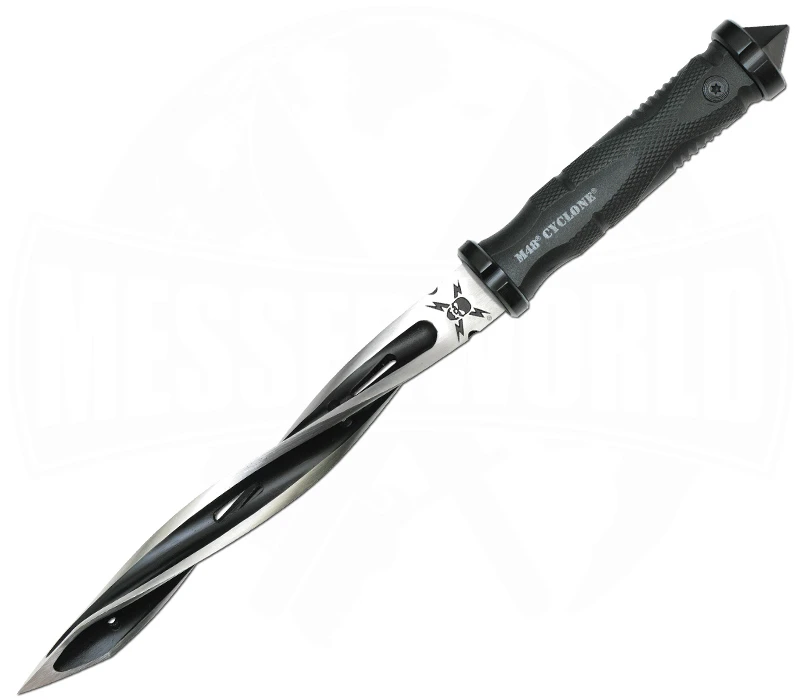 Dieser Dolch ist etwas ganz ganz besonderes! Entgegen der gewöhnlichen Dolchklinge ist die 20,3 cm Klinge des Cyclone kunstvoll verdreht, wodurch sich eine dreischneidige Klinge ergibt. Wie so oft bei der M48 Serie von United Cutlery ist auch das Cyclone mit einem Griff aus glasfaserverstärktem Kunststoff ausgestattet. Der am Griffende angebrachte Glasbrecher/Skullcrusher besteht aus Edelstahl. Ein schönes Modell für alle Messersammler, die nach etwas Ungewöhnlichem suchen!