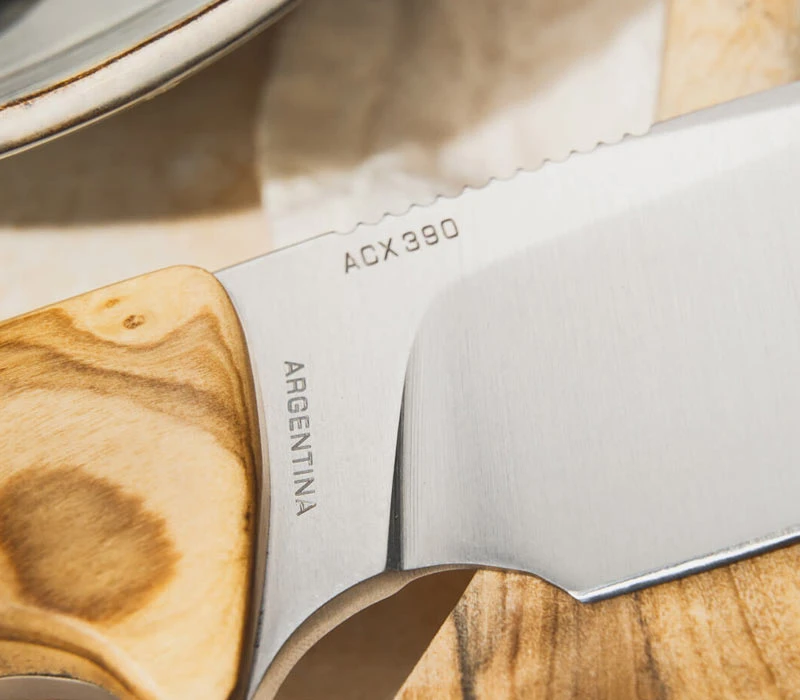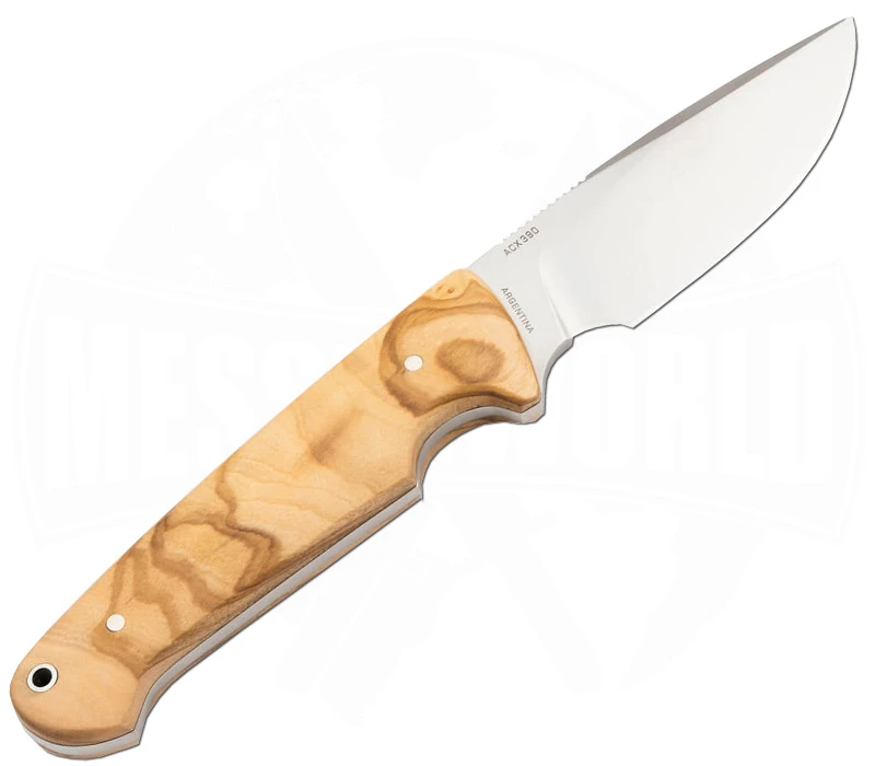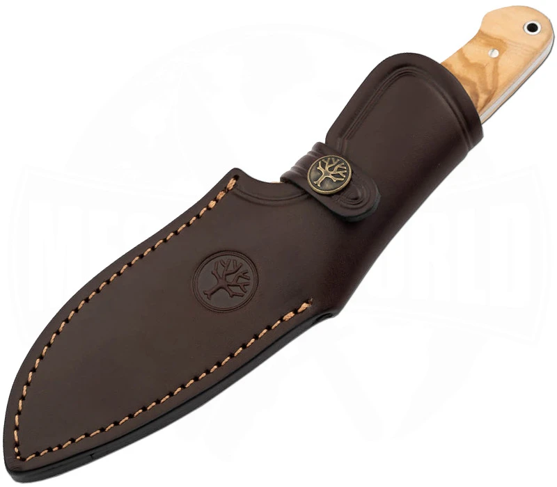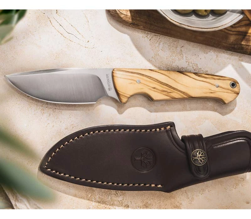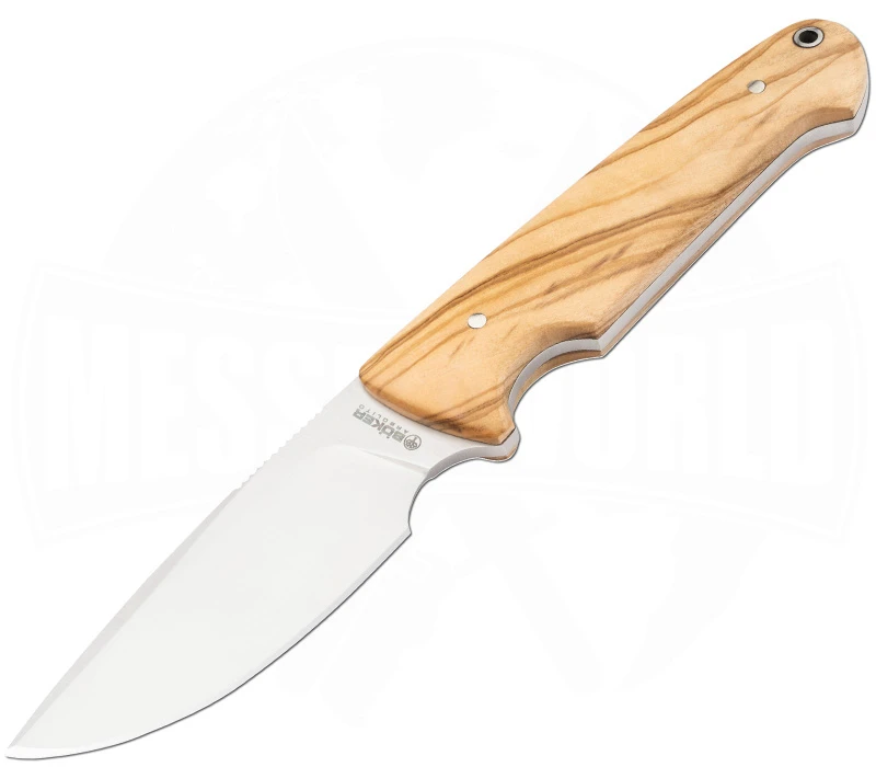 Bökers Arbolito Vultur ist ein ausgezeichnetes Jagd-, Outdoor- und Bushcraft-Messer, das vor allem fĂŒr scharfe Schnitte geeignet ist, die ein flaches Klingenprofil benötigen. Die breite Drop-Point-Klinge findet universelle Einsatzmöglichkeiten und besitzt dank des ACX390 Edelstahls eine hohe BurchelastizitĂ€t. Die Vollerlbauweise verspricht ein Ă€uĂerst robustes Messer. Das Vultur besitzt zwei ausgeprĂ€gte Fingermulden: Eine im Griff, wodurch selbst bei harten SchlĂ€gen eine gewisse StabilitĂ€t und Sicherheit erreicht wird, die zweite befindet sich an der Klingenbasis, was sich vor allem fĂŒr das HĂ€uten von Wild als Vorteil erweist. Die Griffschalen bestehen aus Olivenholz, das eine extrem hohe WitterungsbestĂ€ndigkeit mit sich bringt. Trotz NĂ€sse und KĂ€lte besitzt das Jagdmesser eine ausgezeichnete Haptik. Es befindet sich eine kleine Fangriemenöse am Griffende. Mitgeliefert wird eine hochwertige Sattellederscheide mit GĂŒrtelschlaufe und Druckknopfriegel, die das Vultur sicher schĂŒtzt.