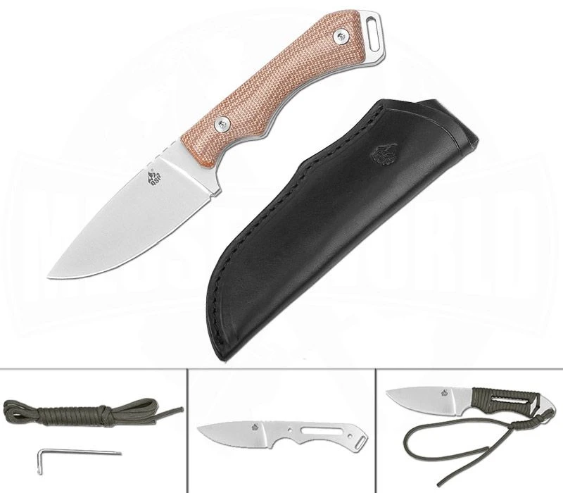 Das QSP Workaholic ist ein richtiges Arbeitstier. Die feststehende Klinge in Vollerlbauweise ist mit einer wunderschönen Micartabeschalung ummantelt. Am Griffende ragt der Erl noch raus und besitzt eine große Fangriemenöse, an der das Messer befestigt werden kann. Das tolle an diesem Messer ist es, dass der Micartagriff durch Paracord einfach und unkompliziert ersetzt werden kann. Schraube dazu nur die zwei Schrauben der Micartaschale ab und wickel den Paracord um den Griff, wie in der Anleitung. Natürlich kannst du es auch in deinem eigenem Stil umwickeln. So bietet das Messer viel Platz für die Individualisierung deines eigenen Messers. Die Drop-Point-Klinge besteht aus Böhler N690-Stahl und arbeitet präzise. Mit ihr lässt sich so gut wie jedes Hindernis überwinden. Nach dem Arbeiten kann das Messer in der mitgelieferten Lederscheide ruhen und sich auf den nächsten Einsatz freuen. Es ist immer bereit für die Arbeit, selbst wenn du es noch nicht bist. Werde auch du zu einem Workaholic!